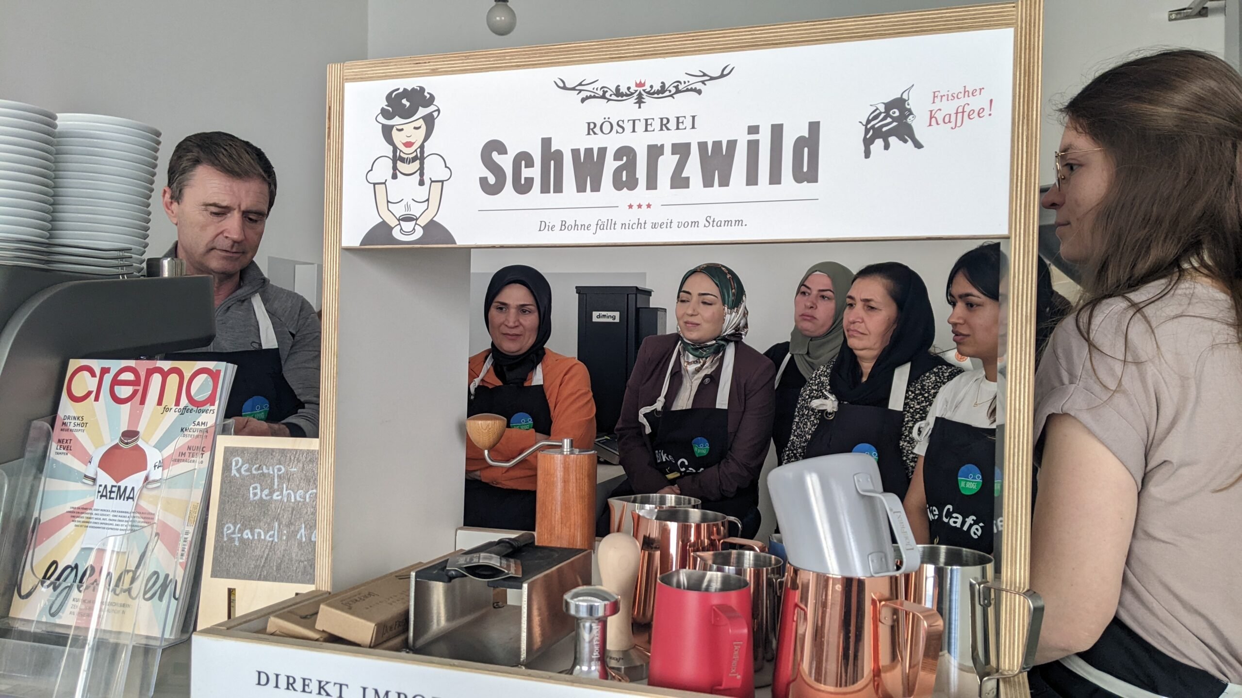 Darüber hinaus bieten wir einen Qualifizierungsworkshop (Baristaworkshop) und Teamtreffen für das ehrenamtlich engagierte Bike Café Team an.
